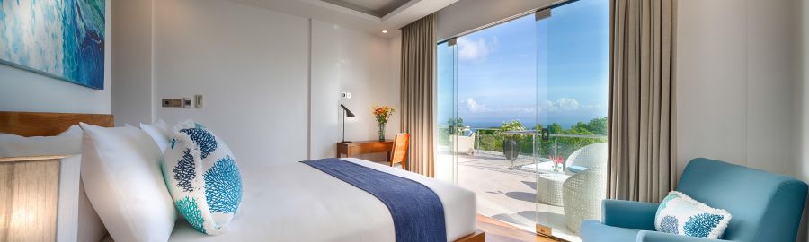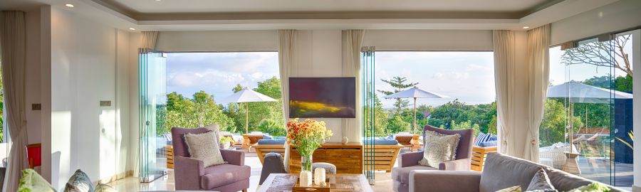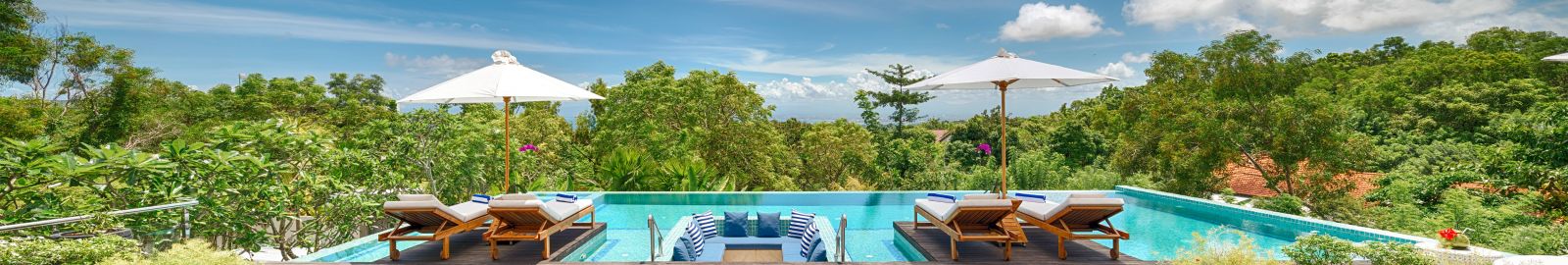 Distinguished by an abundance of space, Villa Kalibali extends upwards on three levels to maximise the views, while offering a blend of air-conditioned comfort and alfresco living. The interiors are filled with comfortable furnishings and ocean-themed artwork. In addition to its four bedrooms, Villa KaliBali offers indoor and outdoor dining areas, an air-conditioned living room, a modern kitchen, and a dedicated TV room. Recreation facilities include a fabulous 16x7-metre swimming pool incorporating a Jacuzzi, a miniature-golf course, a steam room with shower, a Bali spa massage room, and a gym, while plenty of relaxation areas ensure that guests will always find a private spot for peace and quiet.